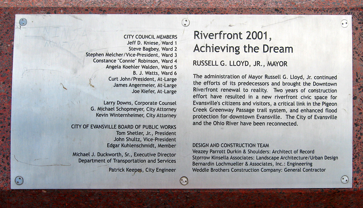 IN Vanderburgh Evansville Riverfront Park 2001 riverfront acknowledgements